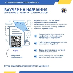 Для оформлення необхідно звернутися до територіального підрозділу Державна служба зайнятості України за місцем проживання або подати заявку онлайн на офіційному порталі служби https://www.dcz.gov.ua/profnavch/voucher.