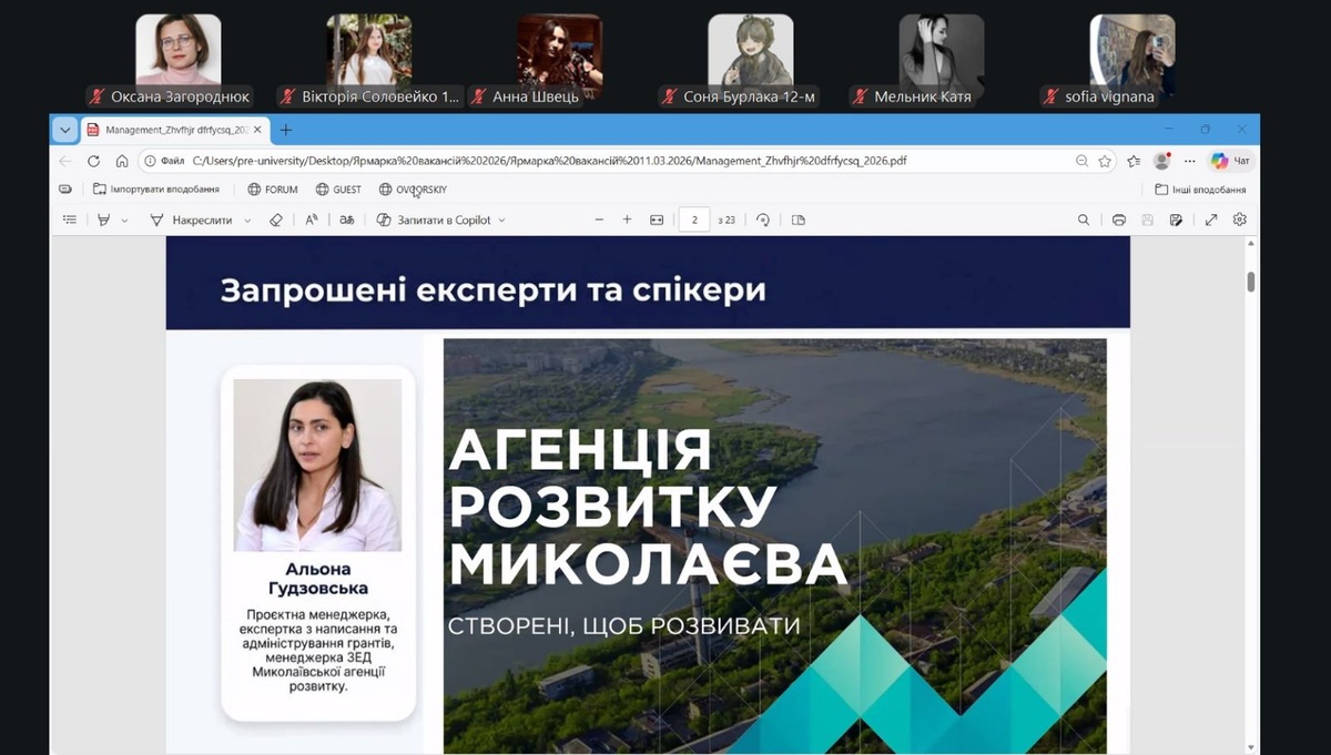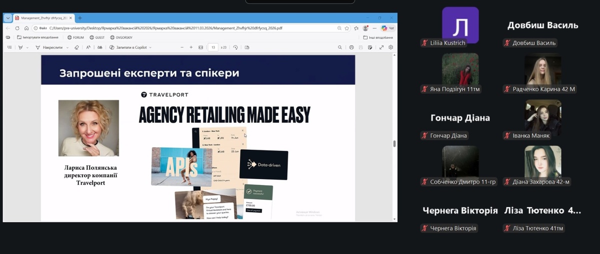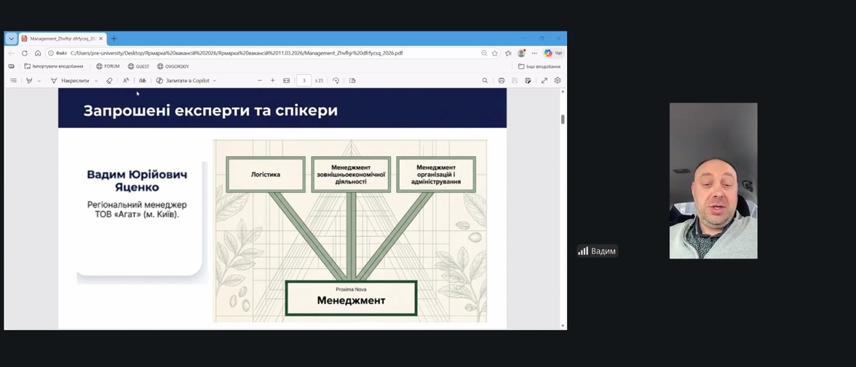 11 березня 2026 року на факультеті менеджменту відбулася онлайн-захід «Ярмарка вакансій», у якій взяли участь здобувачі вищої освіти та викладачі факультету менеджменту. Захід став важливою платформою для комунікації студентів із представниками бізнесу, обміну досвідом та ознайомлення з актуальними можливостями працевлаштування.